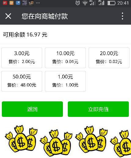 4.點擊充值按鈕后,選擇充值金額,并點擊立即充值